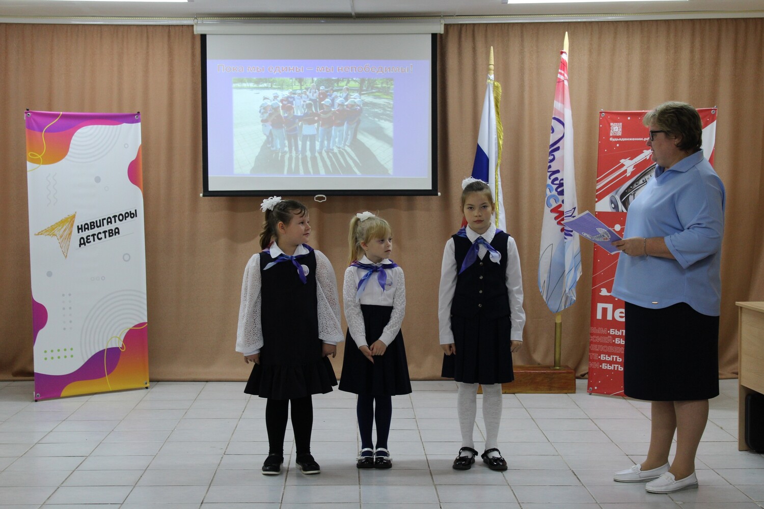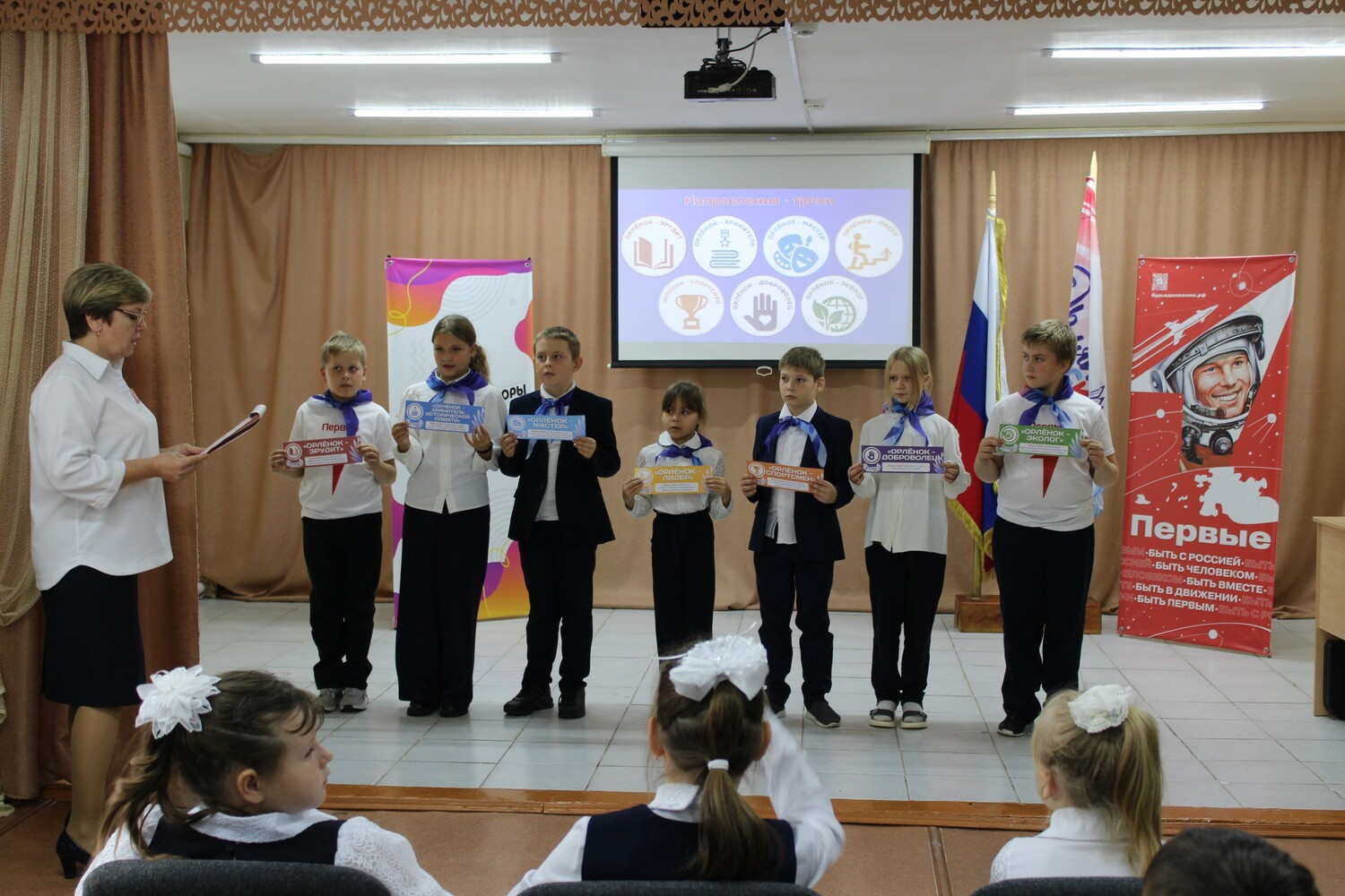 15 октября в нашей школе прошла торжественная церемония посвящения первоклассников в "Орлята России". Три первоклассницы стали частью дружной кома